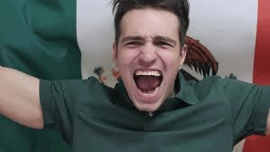 Take a look at the man in the photo. He is very happy – can you think why ? Maybe he is watching football and his team, Mexico, scored. He is shouting.