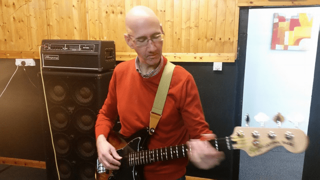 His wife took the photo last March. Pete is playing bass guitar in a studio. It looks like he is having fun. He plays in a band called ‘The Deep Six’.